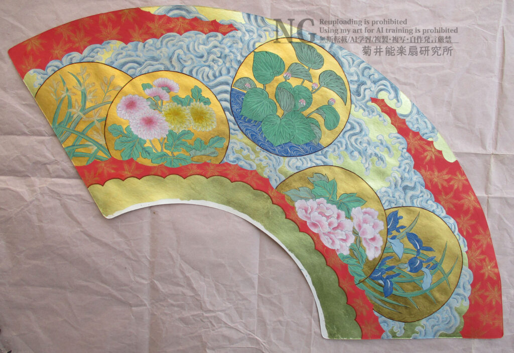 舞扇は、能扇の絵柄から参考にされるものが多くあります。詳しくは別枠でご紹介します。