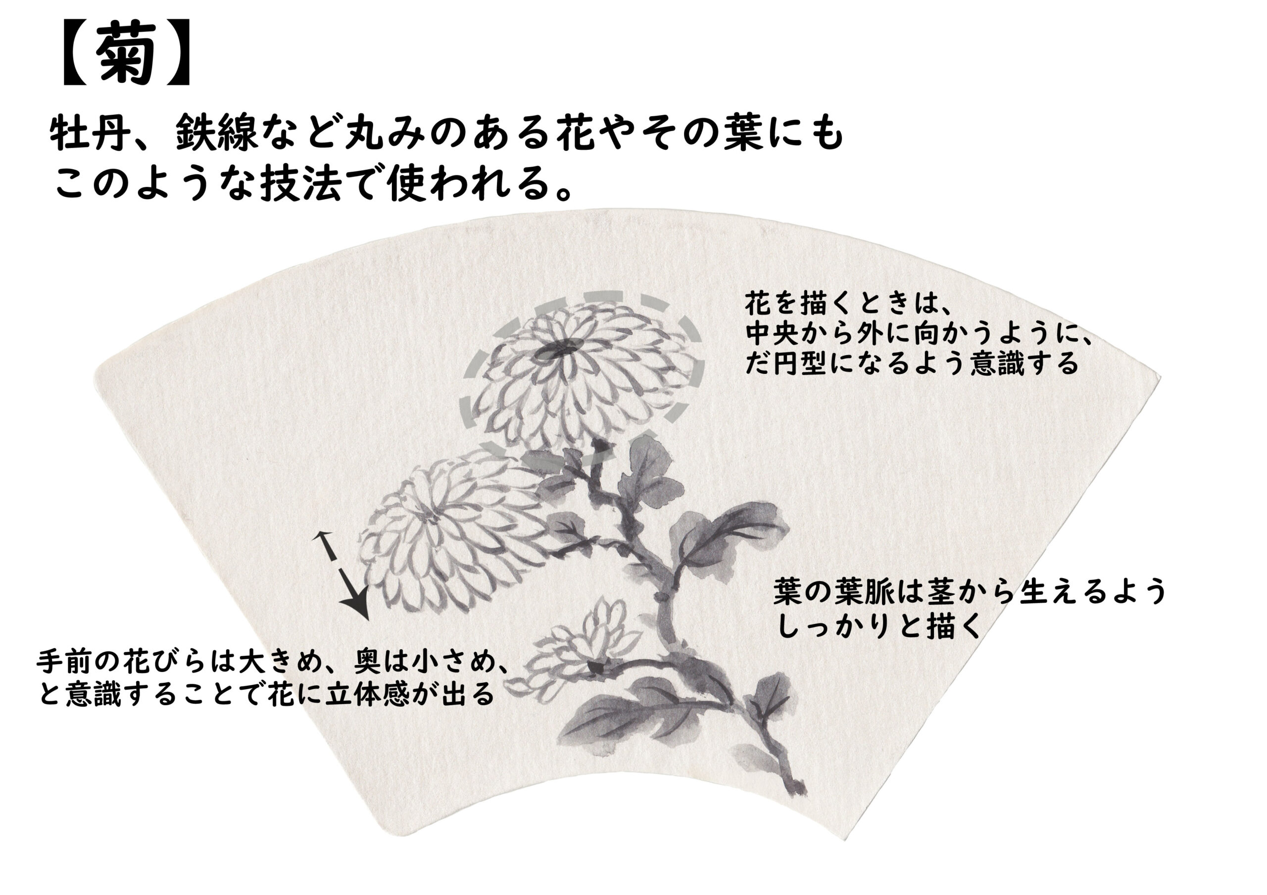 能の扇の絵には欠かせない技法が、数多くみられると思います。